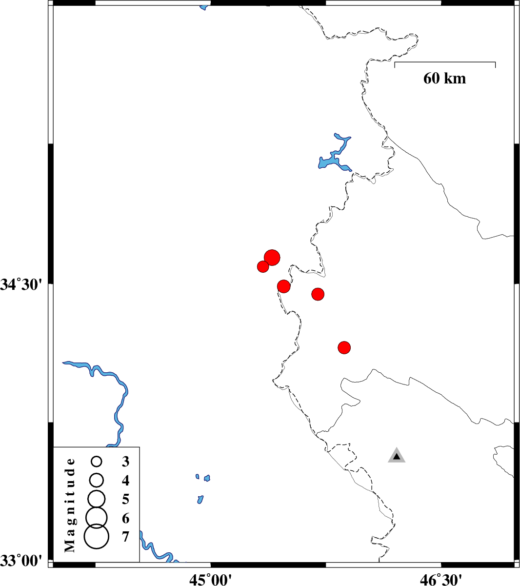 | 2022/08/05 | 09:07:31.3 | 13:37:31.3 | 34.485 | 45.475 | 12 | ML3.8 | Iraq, 10 km -West of Qasr-E-Shirin | ||