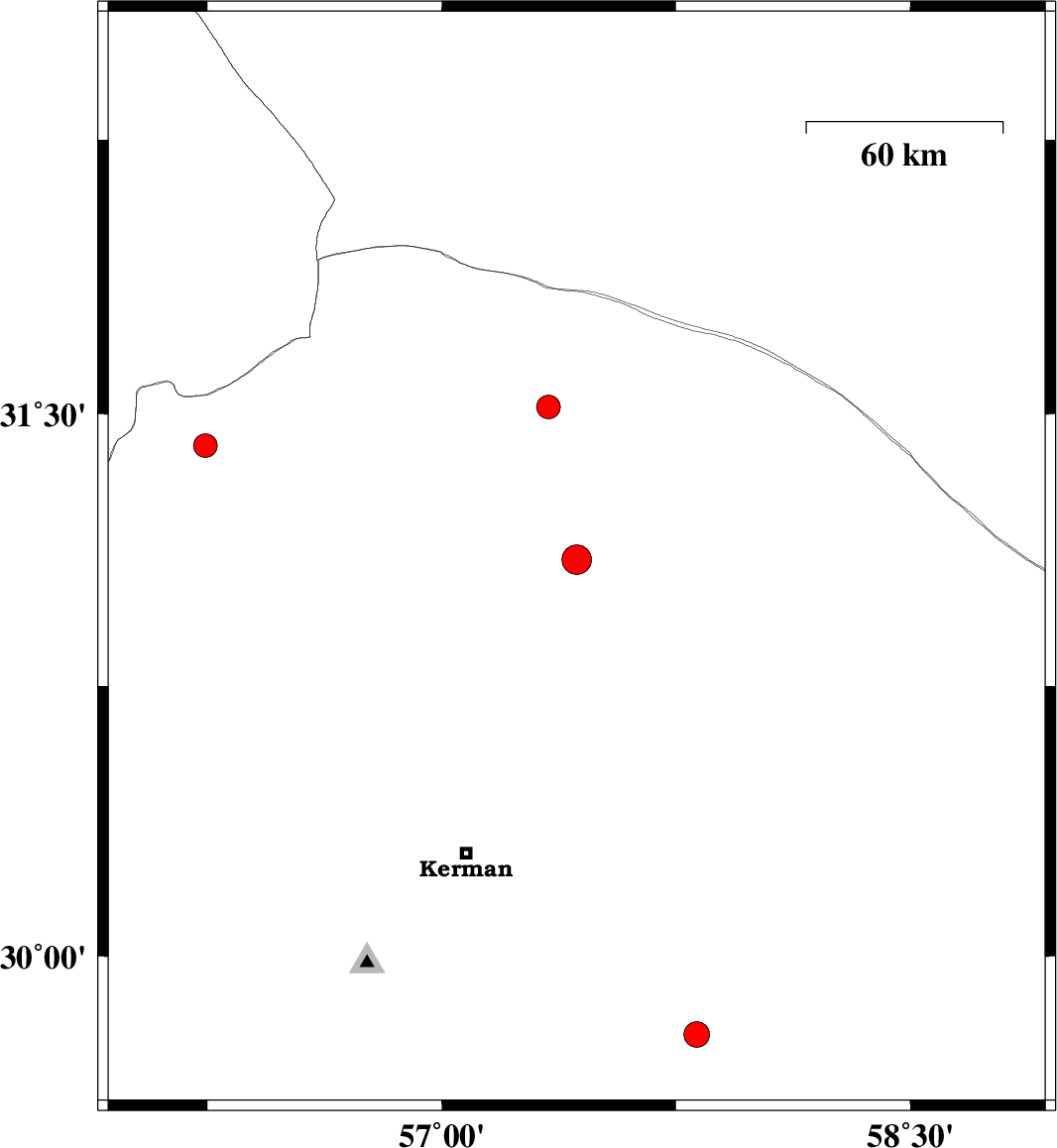 | 2022/08/10 | 19:32:36.3 | 00:02:36.3 | 29.782 | 57.816 | 12 | ML3.6 | Kerman Province, 124 km North of Jiroft |