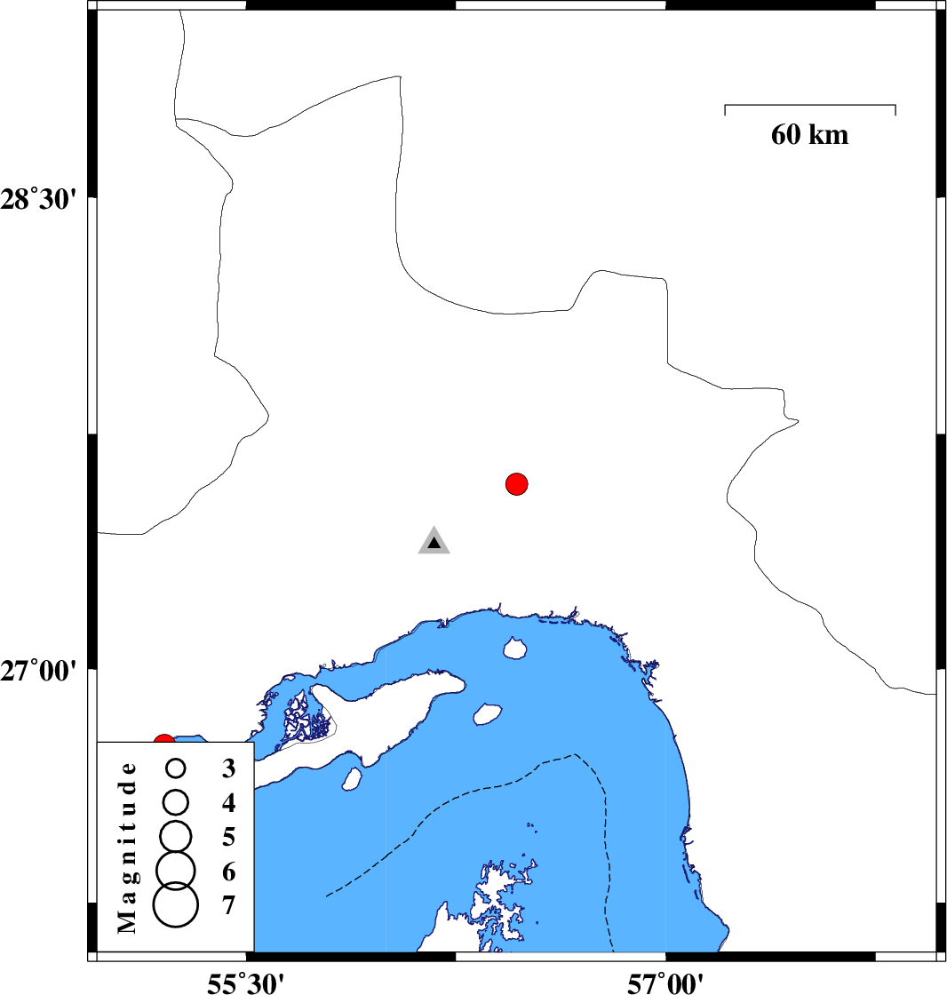| 2022/08/04 | 04:09:27.0 | 08:39:27.0 | 26.754 | 55.208 | 12 | ML3.6 | Hormozgan Province, 44 km North-East of Bandar-e lengeh |