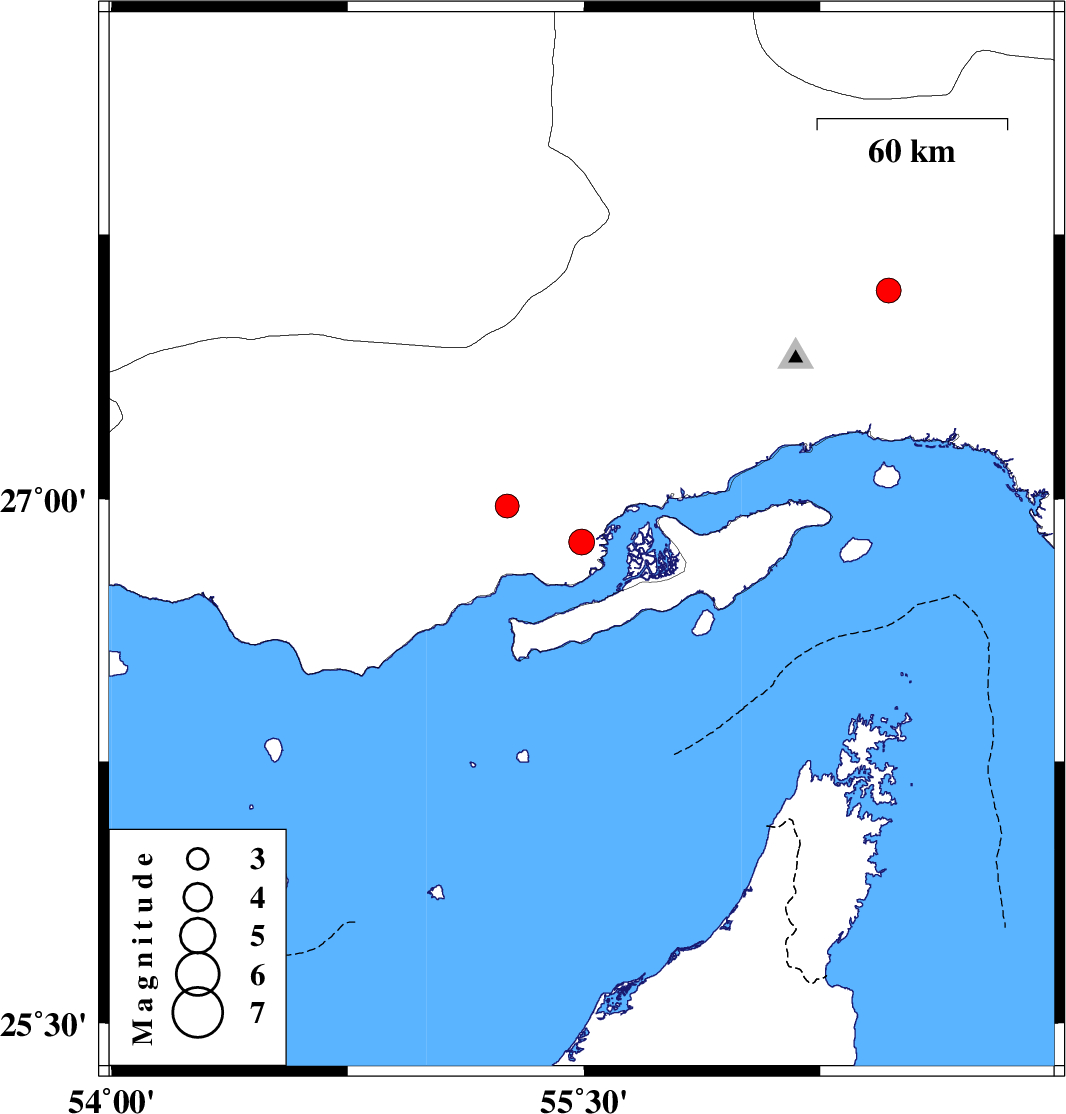 | 2022/08/12 | 10:23:41.9 | 14:53:41.9 | 26.98 | 55.256 | 12 | ML3.4 | Hormozgan Province, 65 km North-East of Bandar-e lengeh | ||