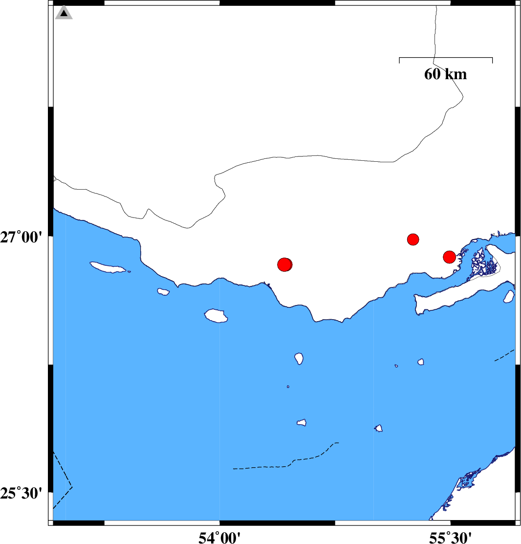 | 2022/08/12 | 10:23:41.9 | 14:53:41.9 | 26.98 | 55.256 | 12 | ML3.4 | Hormozgan Province, 65 km North-East of Bandar-e lengeh |