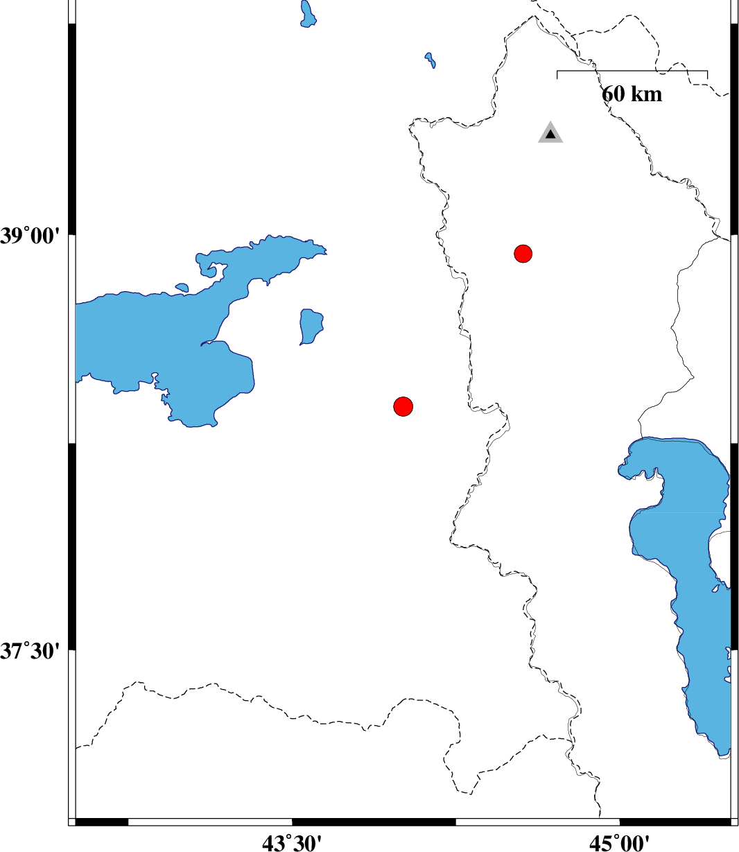 | 2022/09/05 | 08:49:16.2 | 13:19:16.2 | 38.383 | 44.008 | 12 | ML3.9 | Turkey, 70 km North-West of Salmas | ||