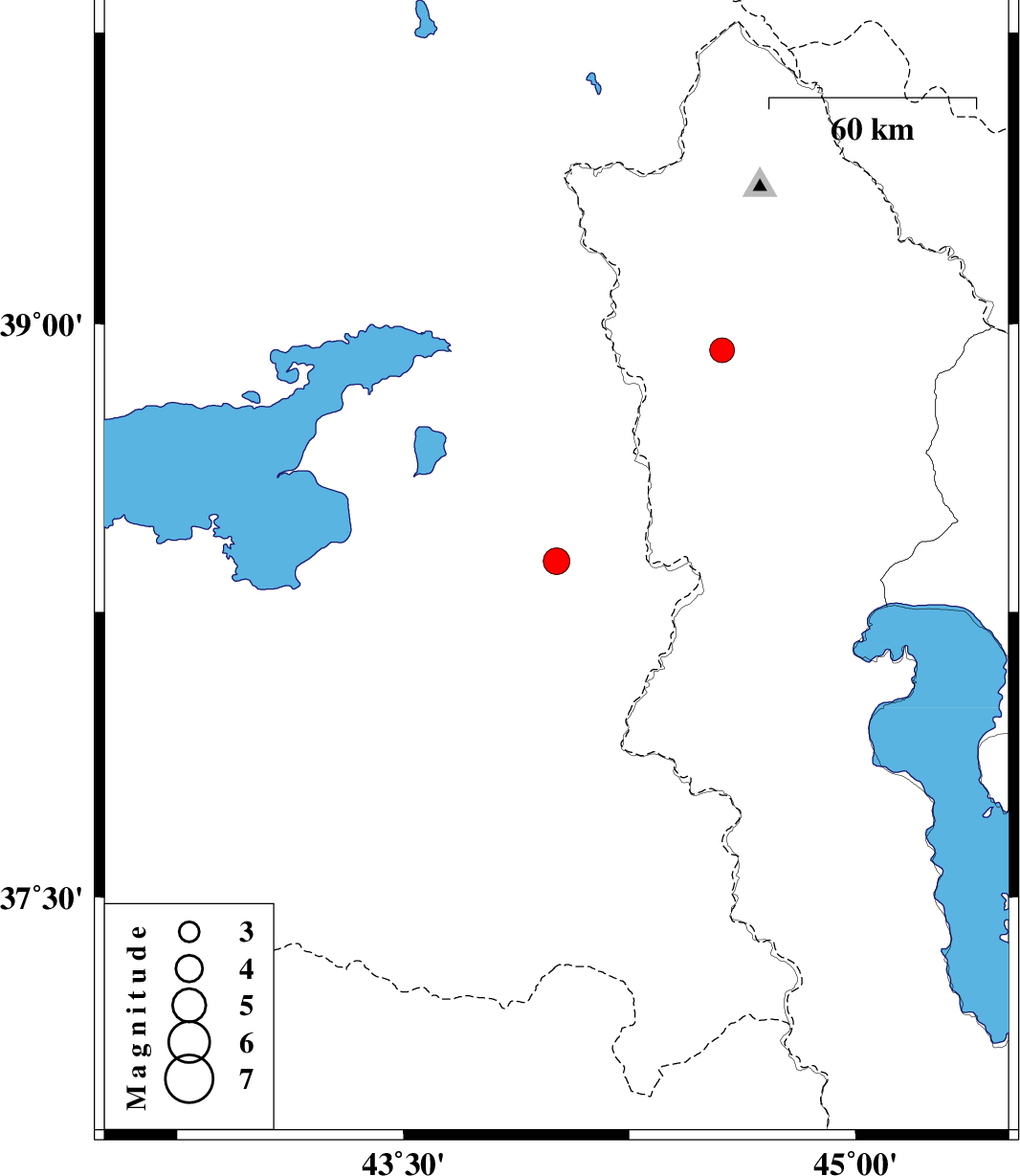 | 2022/09/05 | 08:49:16.2 | 13:19:16.2 | 38.383 | 44.008 | 12 | ML3.9 | Turkey, 70 km North-West of Salmas | ||