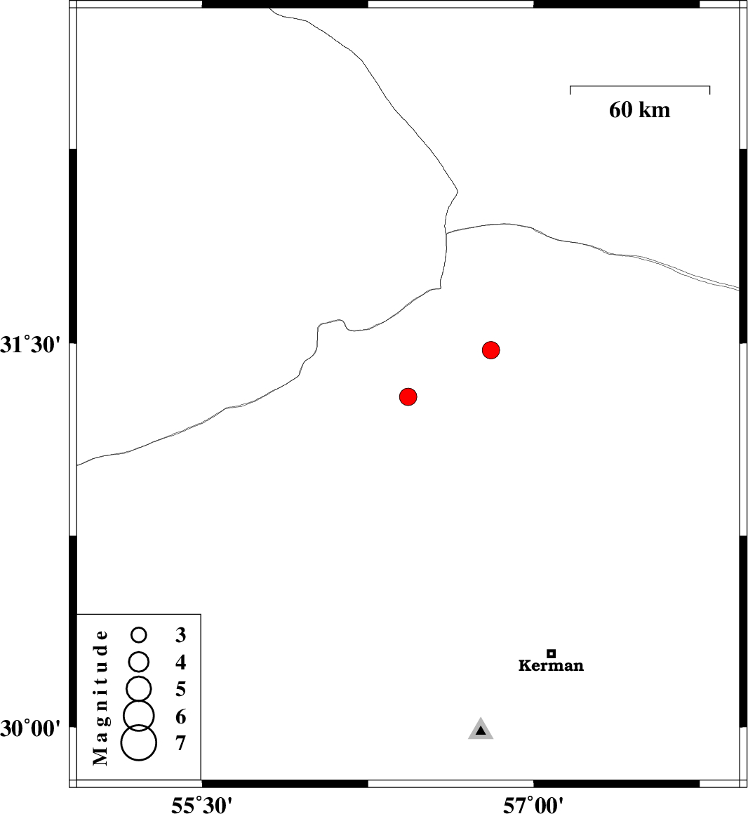 | 2022/07/20 | 05:41:32.3 | 10:11:32.3 | 31.473 | 56.806 | 12 | ML3.5 | Kerman Province, 23 km North of Ravar |