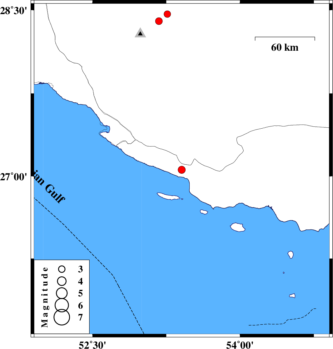 | 2022/09/04 | 22:24:26.8 | 02:54:26.8 | 28.401 | 53.175 | 11 | ML3.3 | Fars Province, 16 km -East of Qir va Karzin |