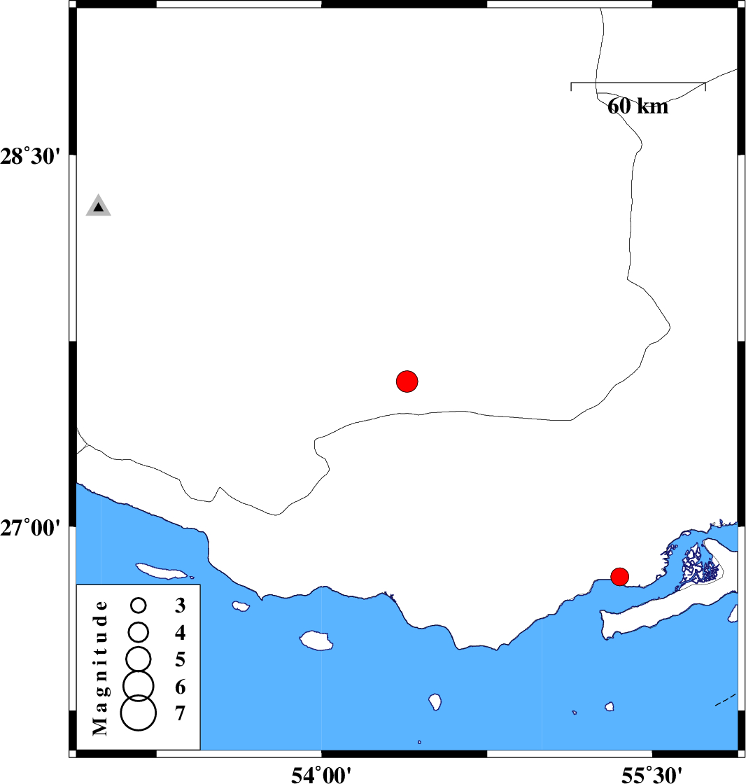 | 2022/09/21 | 05:28:18.1 | 09:58:18.1 | 26.796 | 55.353 | 12 | ML3.6 | Hormozgan Province, 58 km North-East of Bandar-e lengeh |