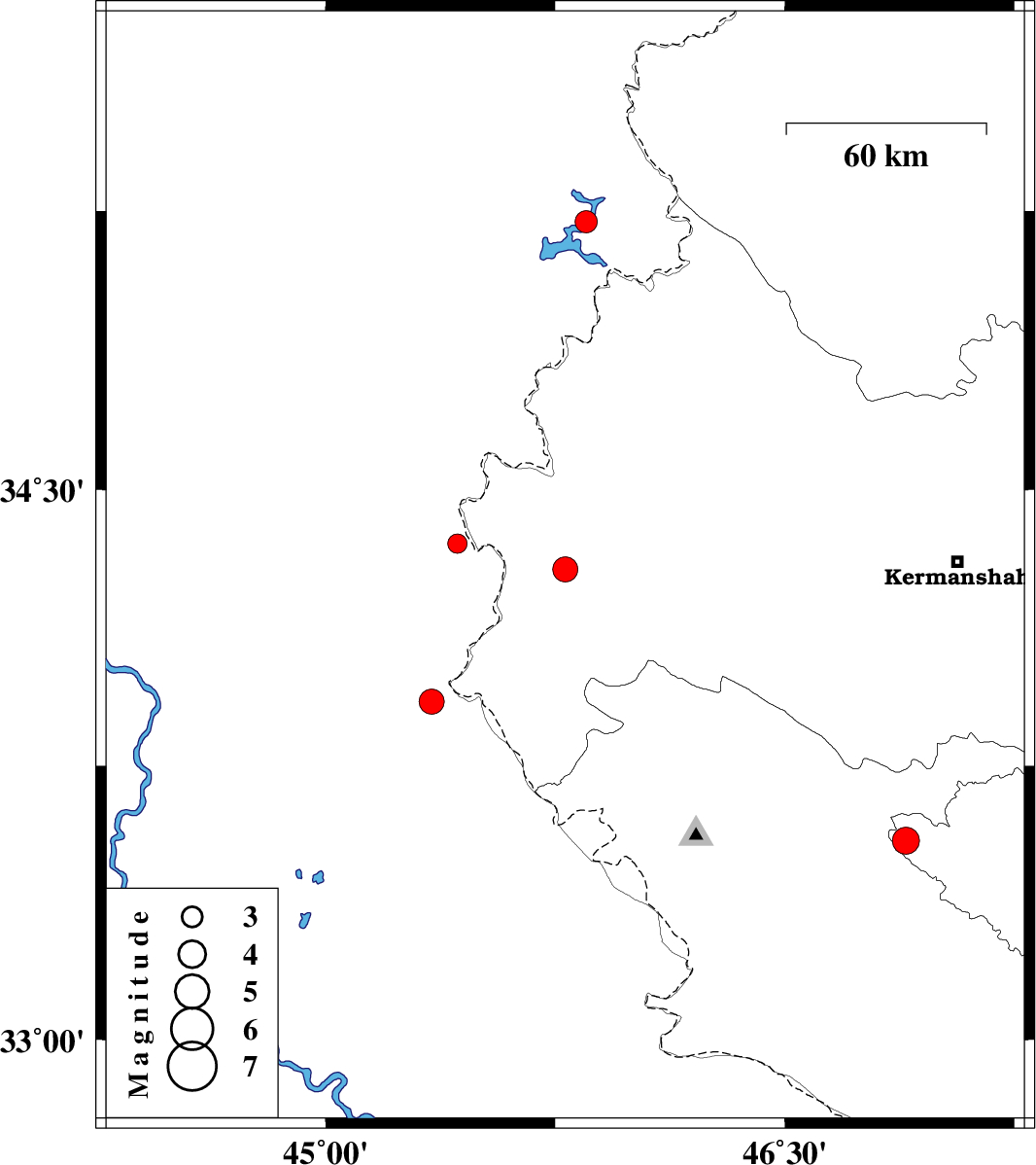 | 2022/10/06 | 18:32:10.1 | 22:02:10.1 | 34.285 | 45.783 | 8 | ML3.6 | Kermanshah Province, 20 km North-West of Gilan-E-Gharb | ||
