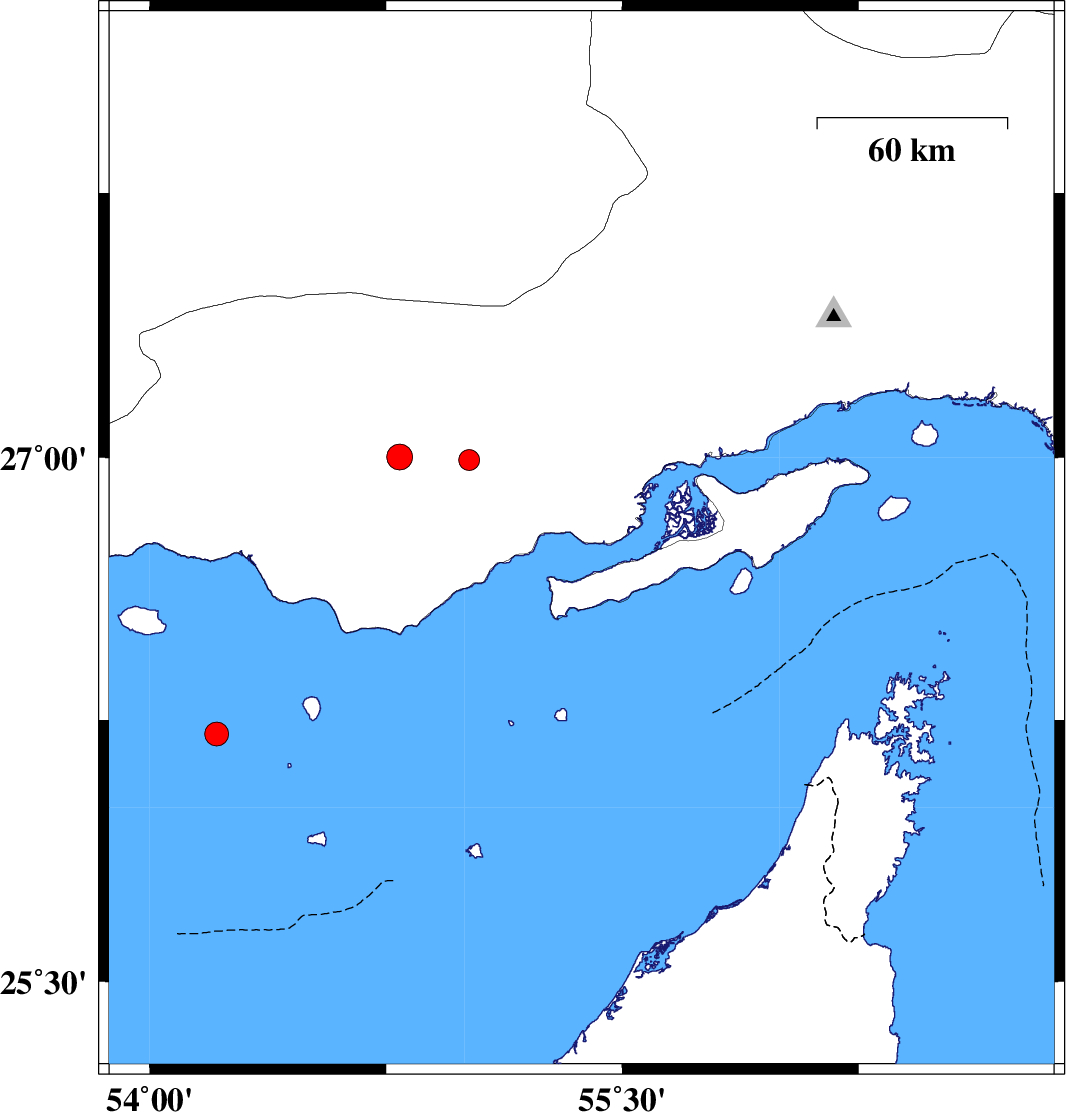 | 2022/10/17 | 21:00:54.5 | 00:30:54.5 | 26.763 | 55.371 | 12 | ML3.4 | Persian Gulf, 58 km North-East of Bandar-e lengeh | ||