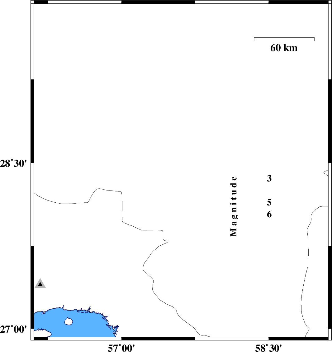 | 2022/10/23 | 13:00:29.9 | 16:30:29.9 | 28.424 | 57.608 | 12 | ML3.7 | Kerman Province, 30 km South-West of Jiroft | ||