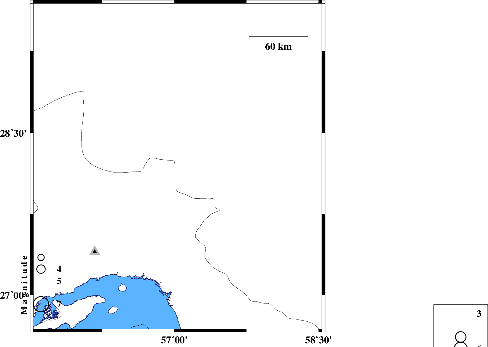 | 2022/10/25 | 19:47:45.7 | 23:17:45.7 | 28.182 | 57.034 | 12 | ML3.1 | Kerman Province, 70 km North-West of Kahnuj | ||