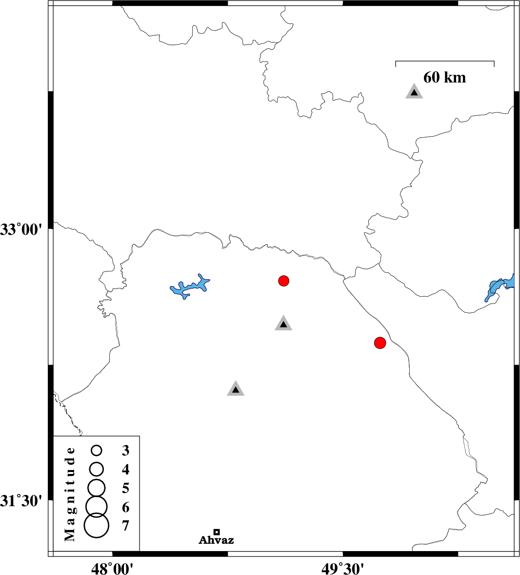 | 2022/10/28 | 09:30:50.2 | 13:00:50.2 | 32.714 | 49.114 | 10 | ML3.1 | Khoozestan Province, 36 km North of Lali |