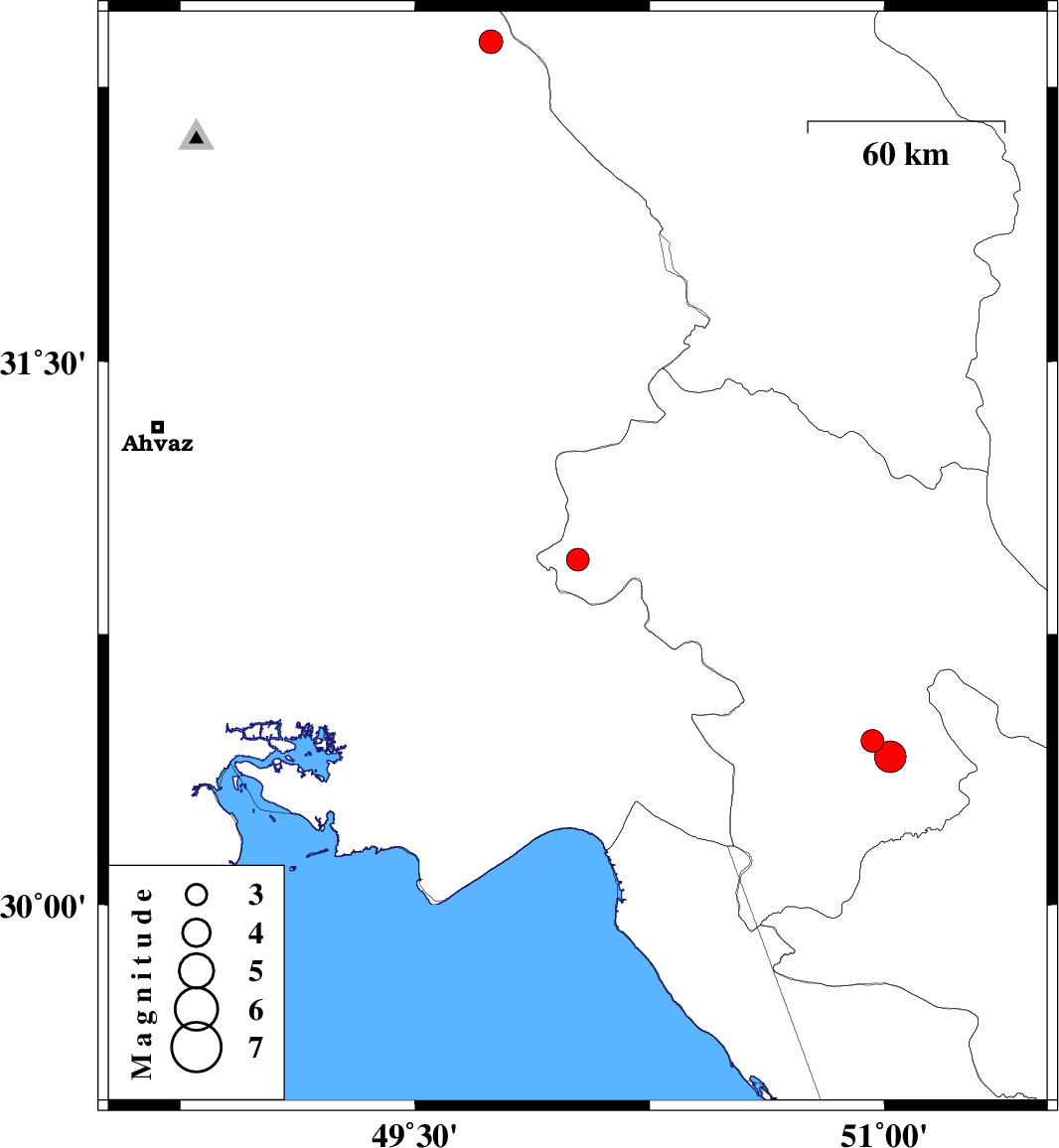 | 2022/10/28 | 04:40:14.9 | 08:10:14.9 | 30.956 | 50.02 | 12 | ML3.3 | Kohkiluieh va boyerahmad Province, 37 km North-East of Omidiyeh | ||