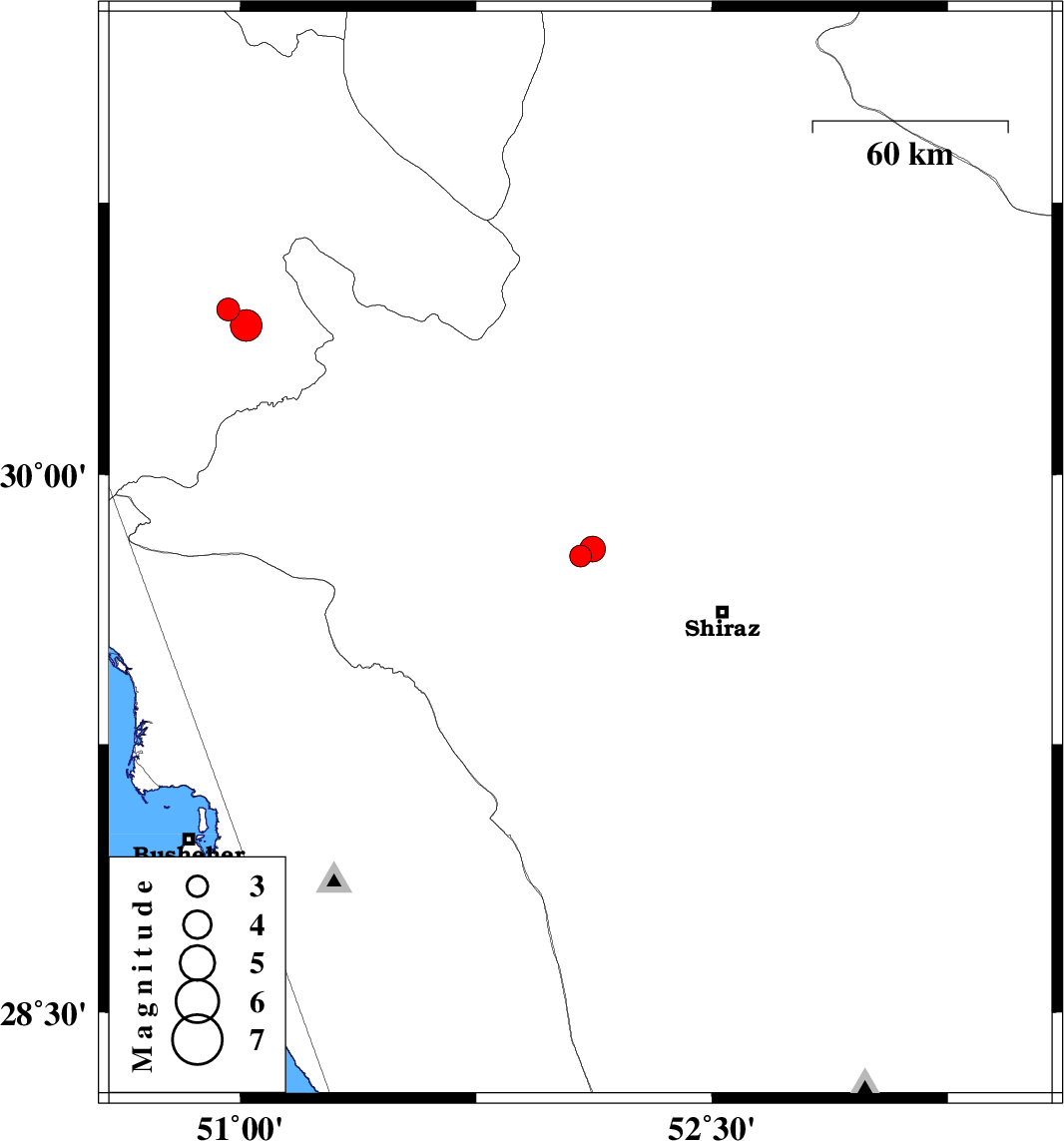 | 2022/10/29 | 15:56:47.0 | 19:26:47.0 | 29.793 | 52.121 | 17 | ML3.6 | Fars Province, 44 km North-West of Shiraz | ||
