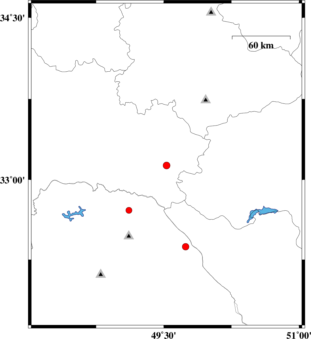 | 2022/11/01 | 16:27:09.5 | 19:57:09.5 | 33.132 | 49.531 | 12 | ML3.5 | Lorestan Province, 36 km South of Azna | ||