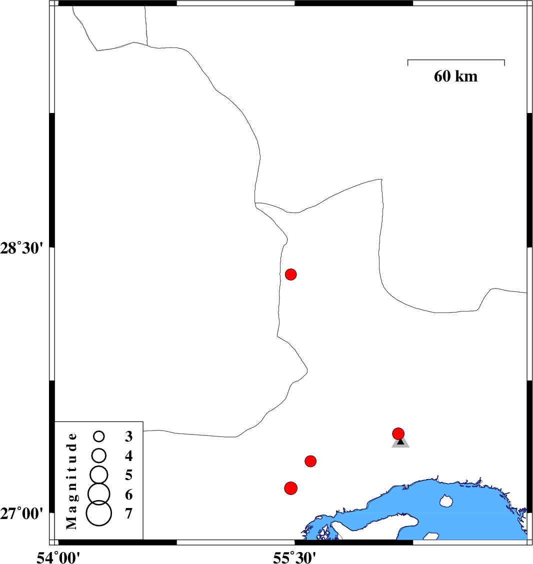 | 2022/10/29 | 12:34:22.8 | 16:04:22.8 | 27.292 | 55.6 | 12 | ML3.2 | Hormozgan Province, 68 km North-West of Bandar-e abbas |