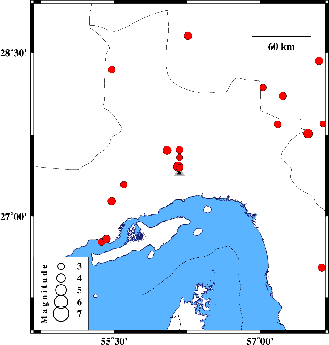 2022/11/11 10:36:25.2 14:06:25.2 27.60756.04512 ML3.9 Hormozgan Province, 53 km North-West of Bandar-e abbas