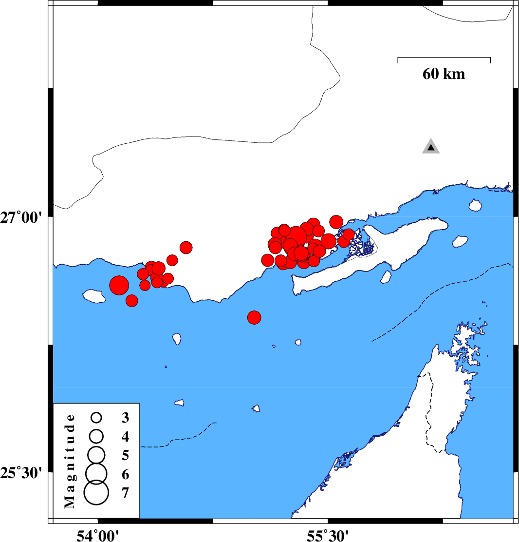 2022/07/02 14:44:13.8 19:14:13.8 26.4155.026 ML3.9 Persian Gulf, 21 km South-East of Bandar-e lengeh