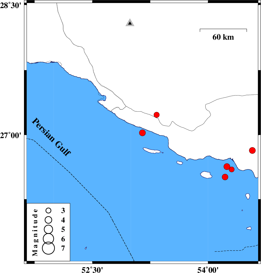 Persian Gulf, 63 km -West of Bandar-e lengeh | |