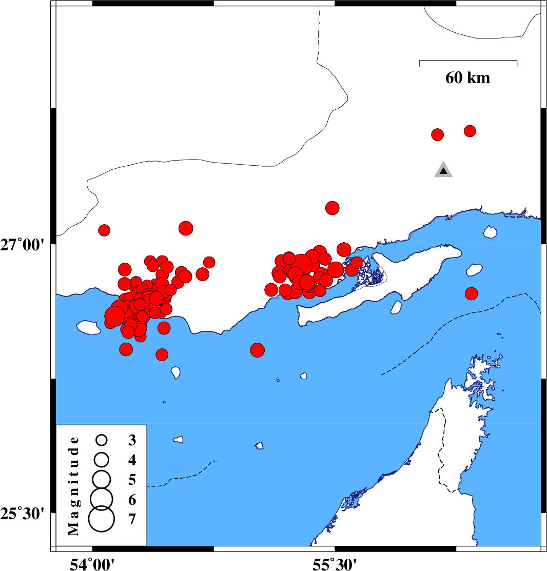 2022/06/19 09:24:06.4 13:54:06.4 26.65954.26112 ML3.4 Persian Gulf, 61 km South-West of Bastak