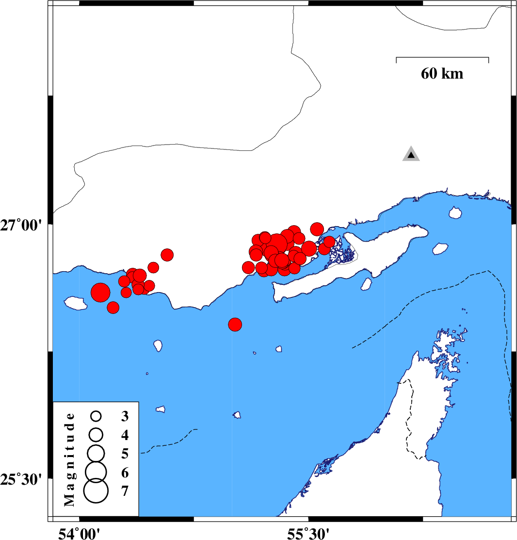 2022/07/02 06:10:12.2 10:40:12.2 26.92355.21515 ML3.4 Hormozgan Province, 57 km North-East of Bandar-e lengeh