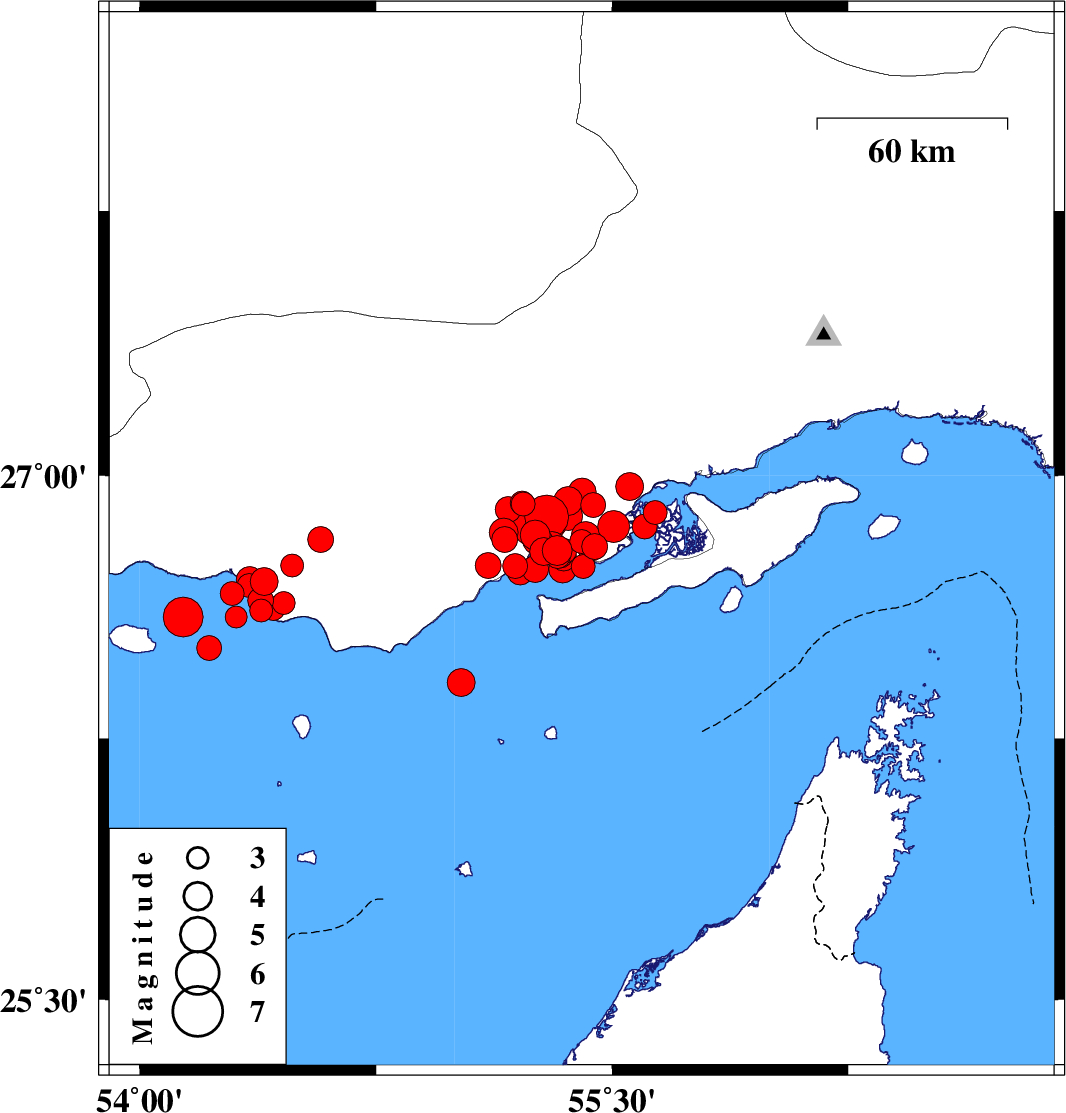 2022/07/01 21:53:22.8 02:23:22.8 26.73555.34312 ML3.9 Persian Gulf, 54 km North-East of Bandar-e lengeh