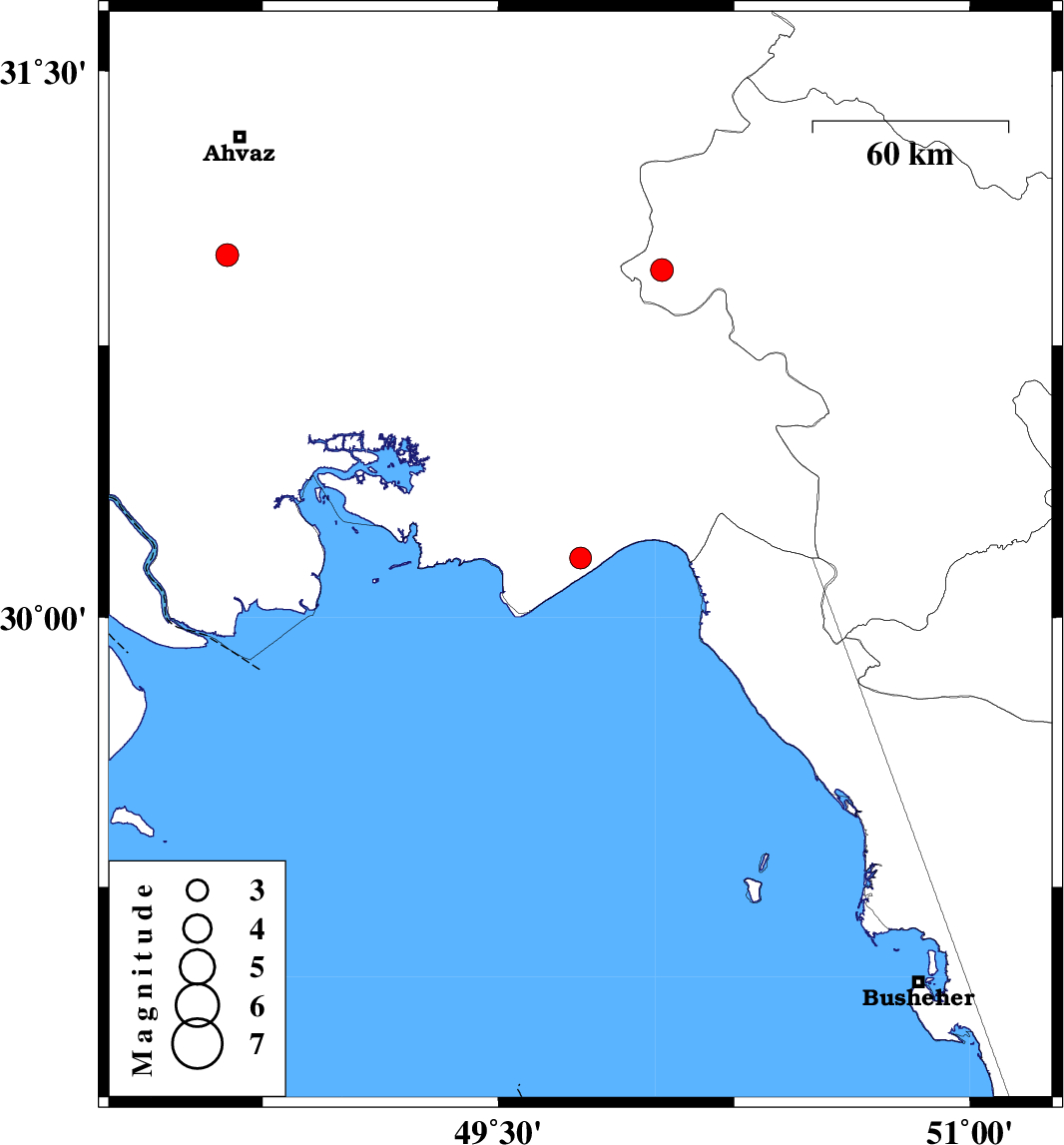 | 2022/10/28 | 04:40:14.9 | 08:10:14.9 | 30.956 | 50.02 | 12 | ML3.3 | Kohkiluieh va boyerahmad Province, 37 km North-East of Omidiyeh |