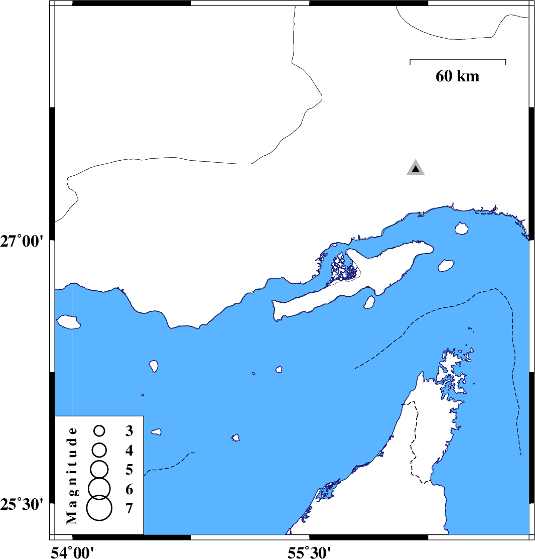 | 2022/11/27 | 23:22:38.4 | 02:52:38.4 | 26.82 | 55.388 | 12 | ML3.2 | Hormozgan Province, 63 km North-East of Bandar-e lengeh |