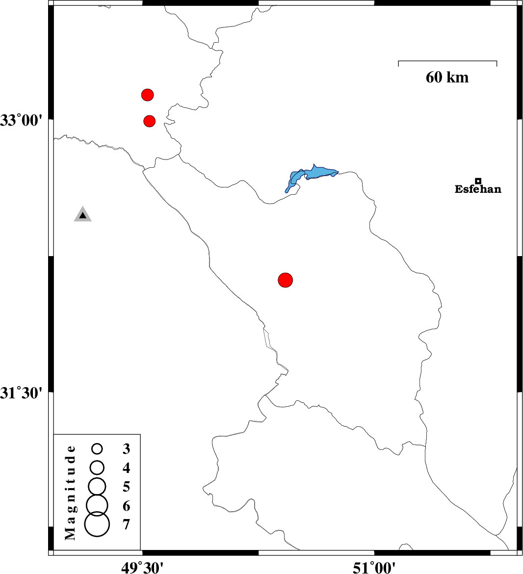 | 2022/11/01 | 16:27:09.5 | 19:57:09.5 | 33.132 | 49.531 | 12 | ML3.5 | Lorestan Province, 36 km South of Azna |