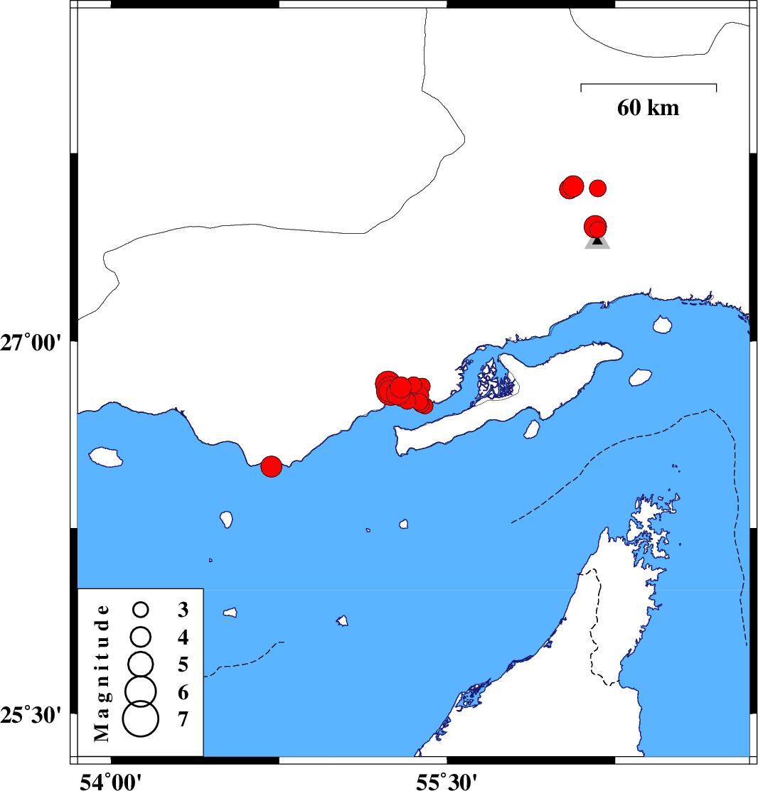 2022/12/01 13:49:55.4 17:19:55.4 26.76155.32212 ML3.4 Persian Gulf, 54 km North-East of Bandar-e lengeh