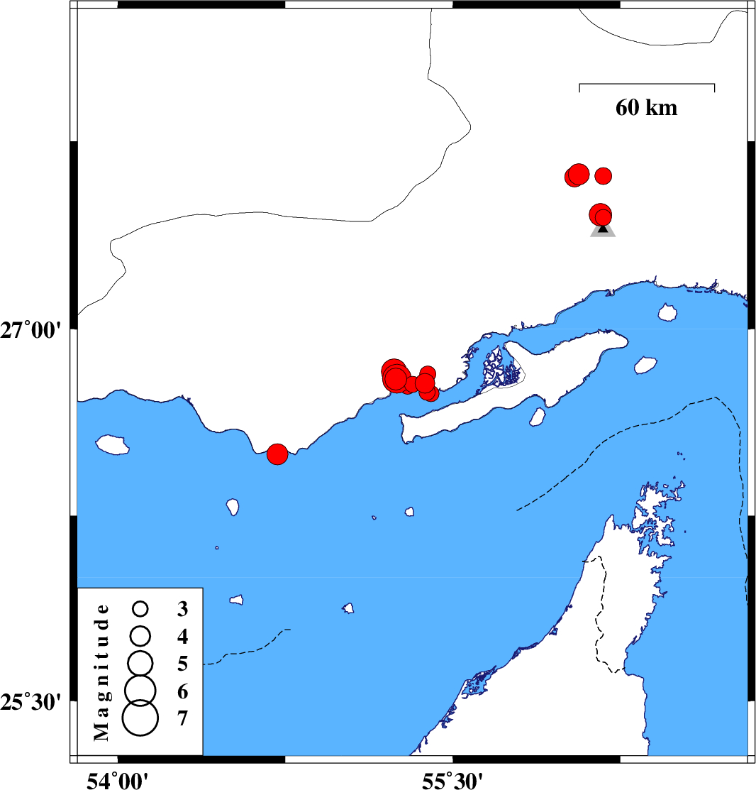 2022/11/19 00:28:13.7 03:58:13.7 26.77155.29712 ML3.3 Persian Gulf, 52 km North-East of Bandar-e lengeh