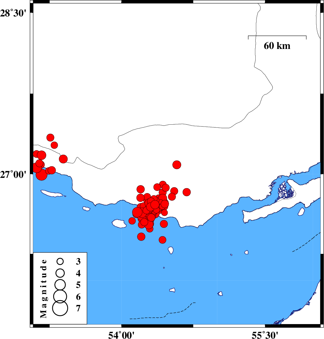 Persian Gulf, 63 km -West of Bandar-e lengeh | |