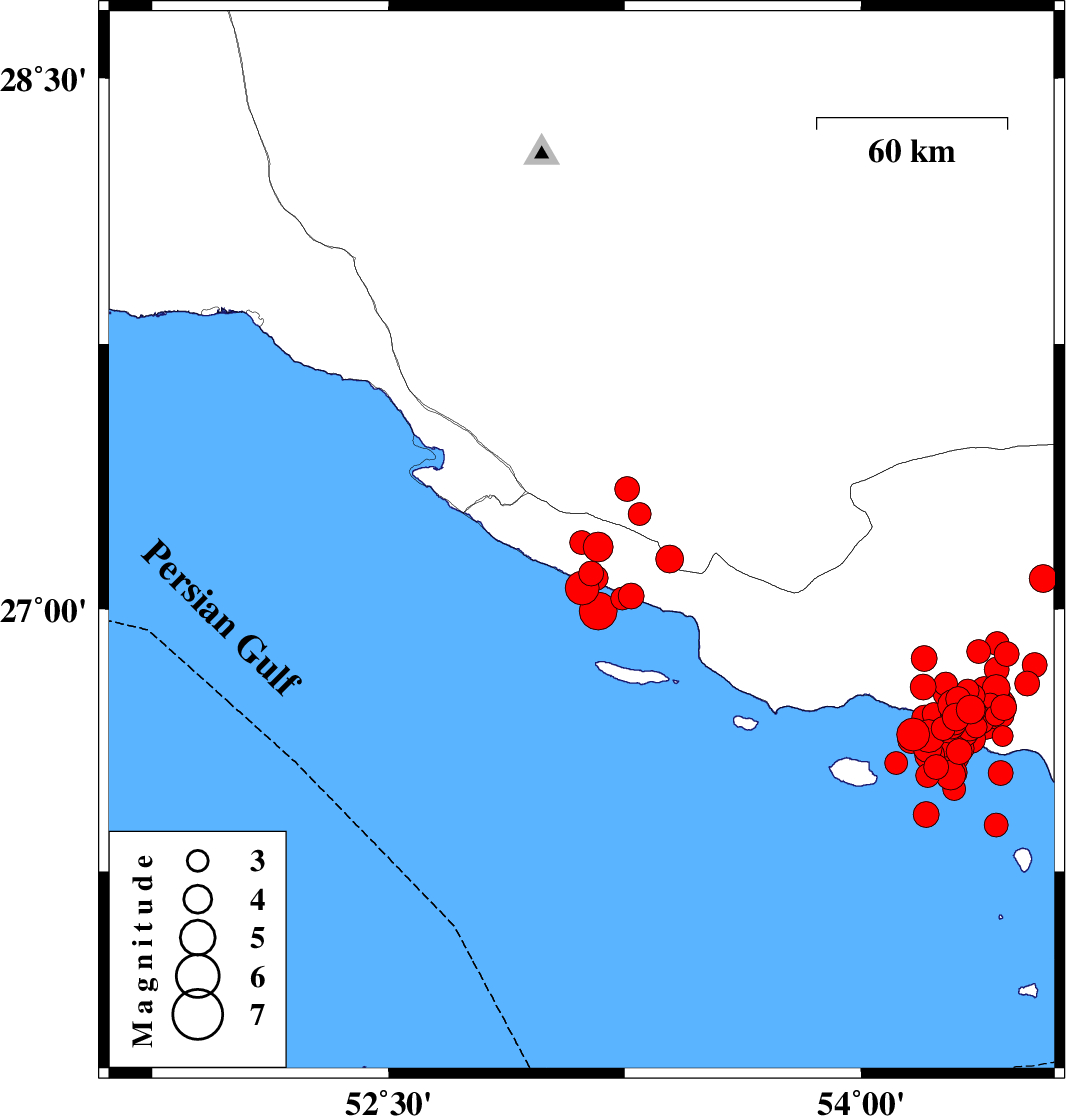 2022/06/22 01:26:43.6 05:56:43.6 27.14153.39316 ML4 Fars Province, 31 km South-East of Lamerd