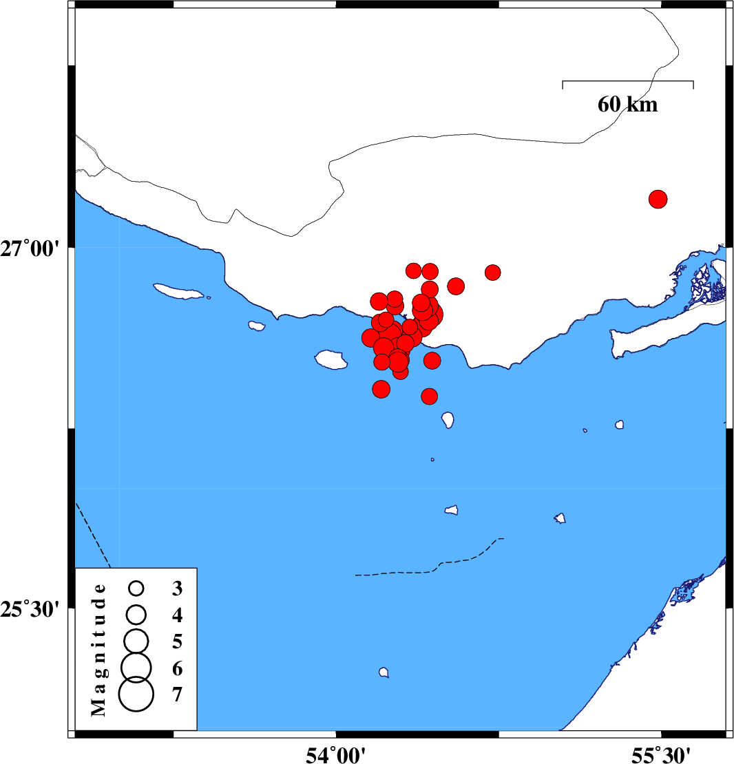 2022/06/15 06:15:42.8 10:45:42.8 26.69754.42712 ML4 Hormozgan Province, 56 km South of Bastak