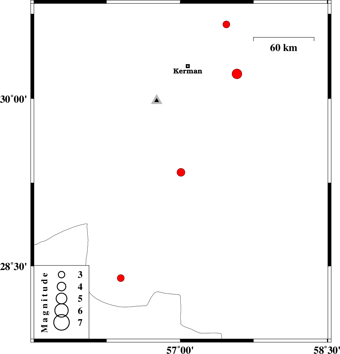 | 2022/11/12 | 22:48:02.7 | 02:18:02.7 | 30.219 | 57.58 | 12 | ML4.5 | Kerman Province, 49 km -East of Kerman |