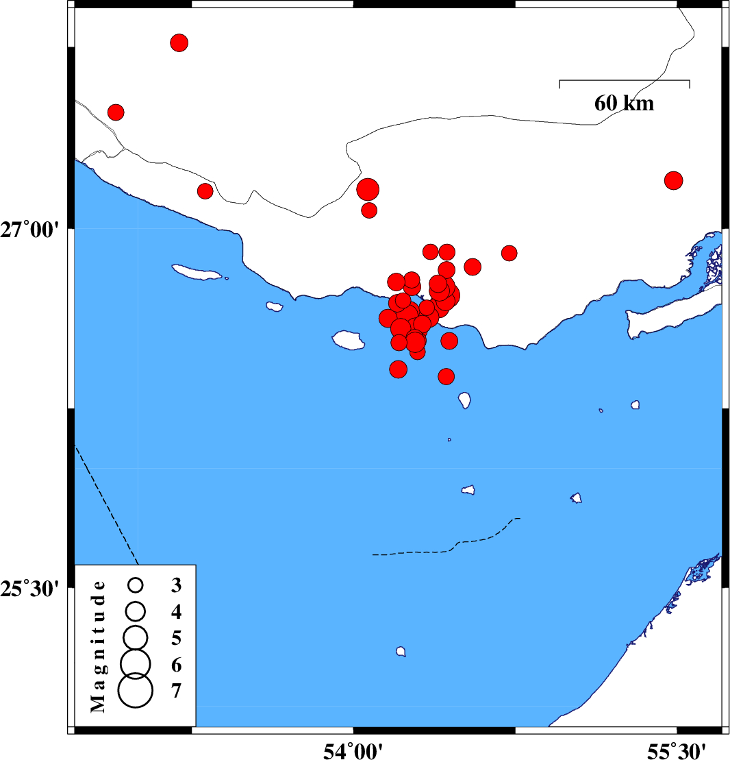 Persian Gulf, 63 km -West of Bandar-e lengeh | |