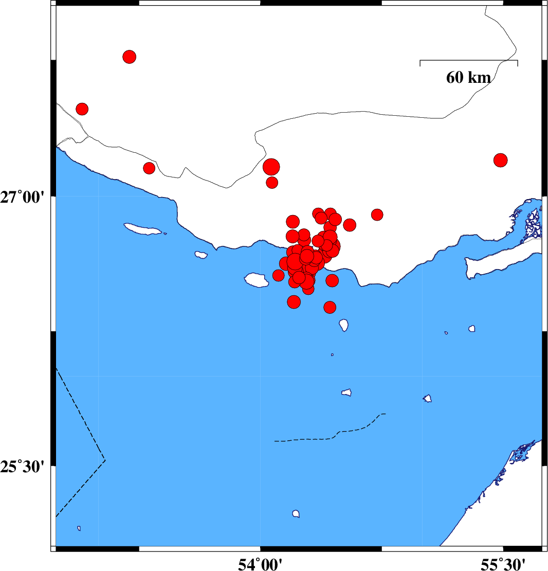 Persian Gulf, 63 km -West of Bandar-e lengeh | |