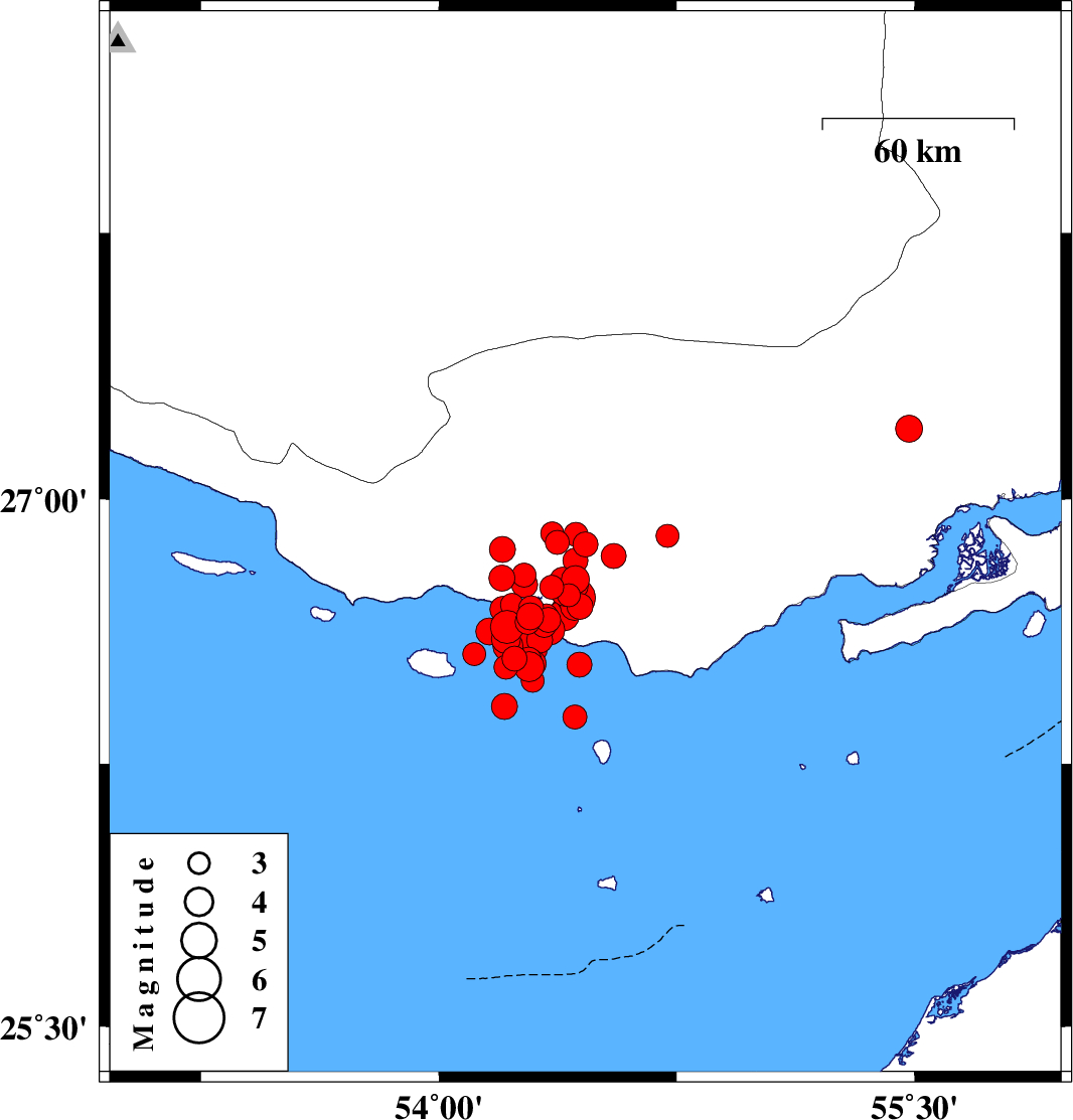 Persian Gulf, 63 km -West of Bandar-e lengeh | |
