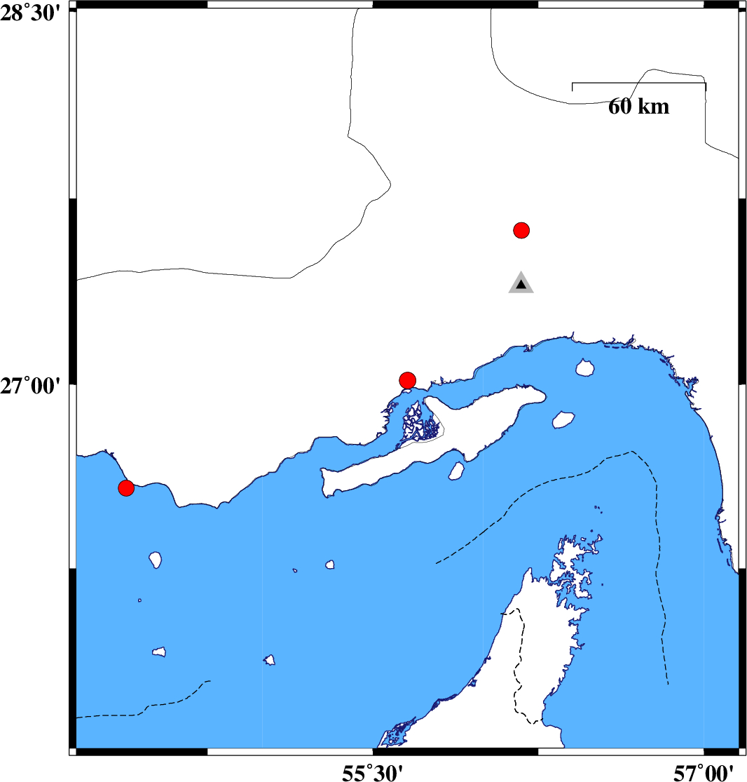 | 2022/12/16 | 23:06:23.8 | 02:36:23.8 | 26.578 | 54.382 | 12 | ML3.3 | Persian Gulf, 47 km -West of Bandar-e lengeh |