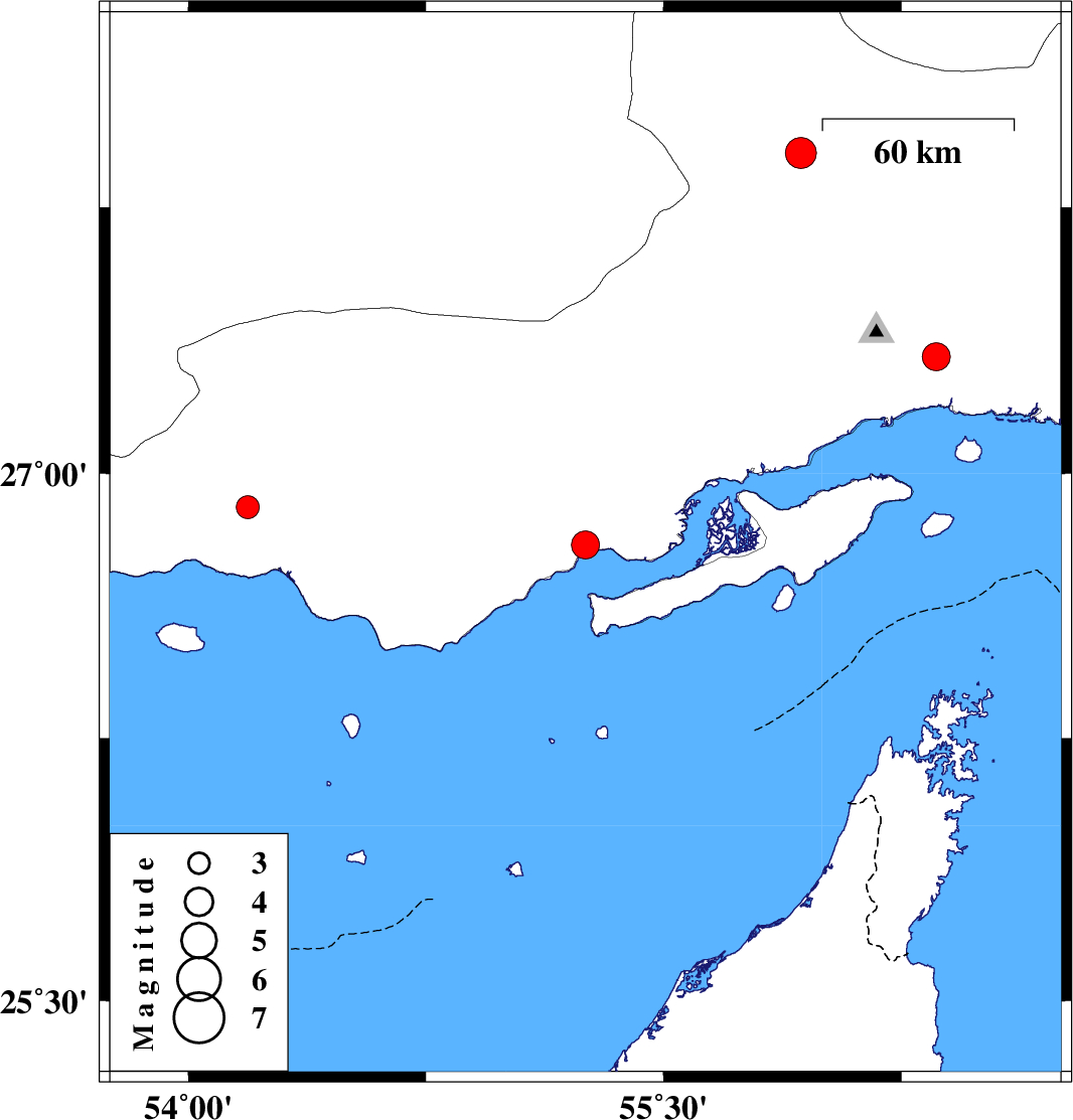 | 2023/01/04 | 16:19:58.4 | 19:49:58.4 | 26.798 | 55.253 | 12 | ML4 | Hormozgan Province, 50 km North-East of Bandar-e lengeh | ||