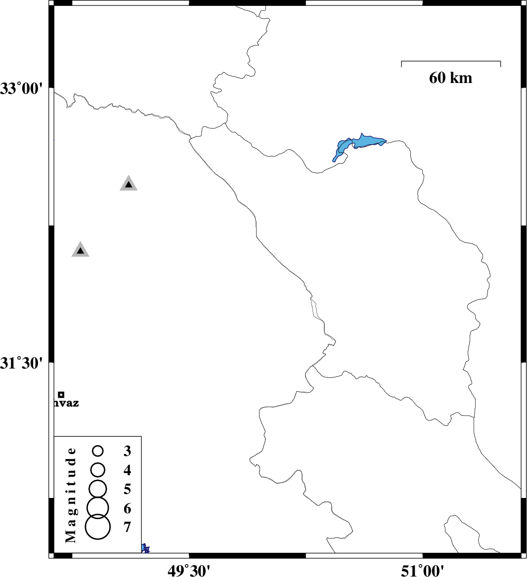 | 2023/01/02 | 13:56:27.8 | 17:26:27.8 | 31.944 | 50.132 | 15 | ML3.5 | Khoozestan Province, 28 km North-East of Izeh |