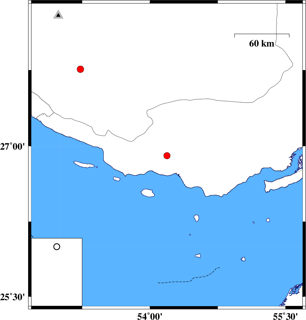 | 2023/01/02 | 19:28:45.3 | 22:58:45.3 | 26.905 | 54.188 | 12 | ML3.2 | Hormozgan Province, 37 km South-West of Bastak | ||