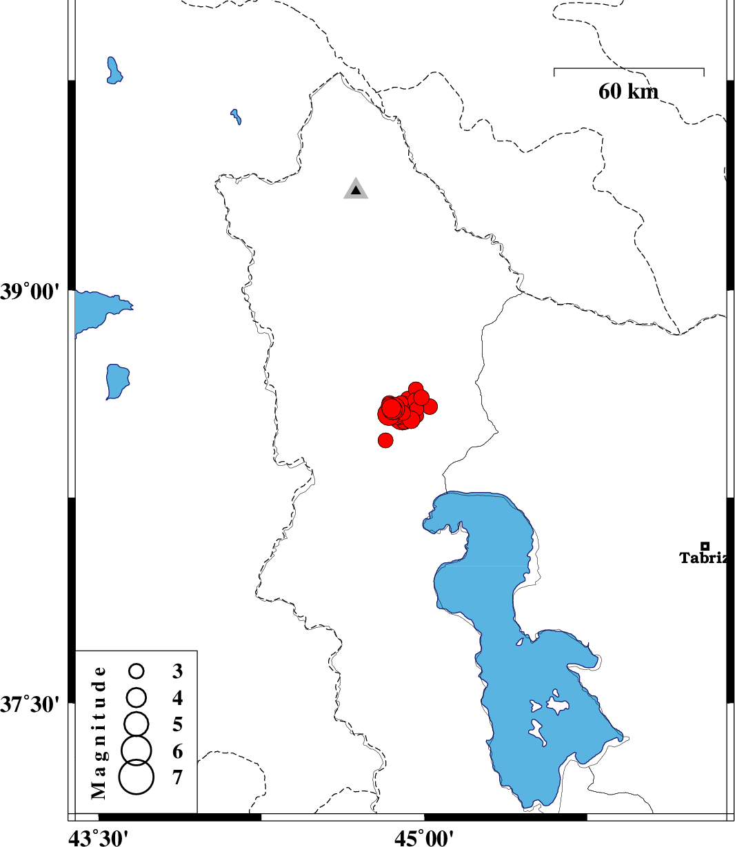 2023/01/29 18:46:20.9 22:16:20.9 38.58144.84210 ML3.7 Azarbaijan Gharbi Province, 10 km -West of Khoy
