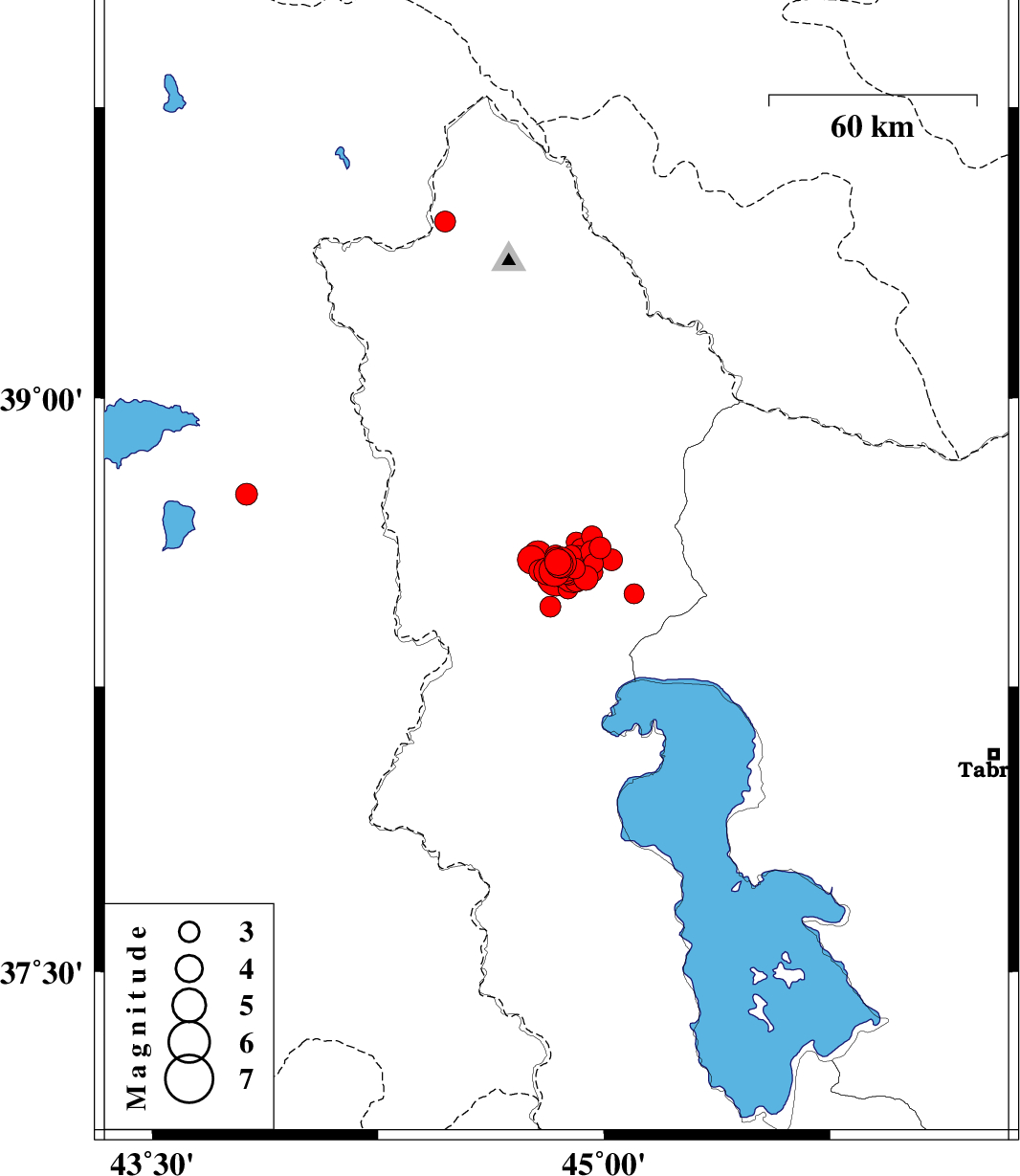 2023/01/29 18:46:20.9 22:16:20.9 38.58144.84210 ML3.7 Azarbaijan Gharbi Province, 10 km -West of Khoy