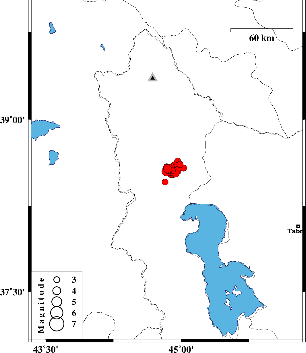2023/01/29 18:46:20.9 22:16:20.9 38.58144.84210 ML3.7 Azarbaijan Gharbi Province, 10 km -West of Khoy