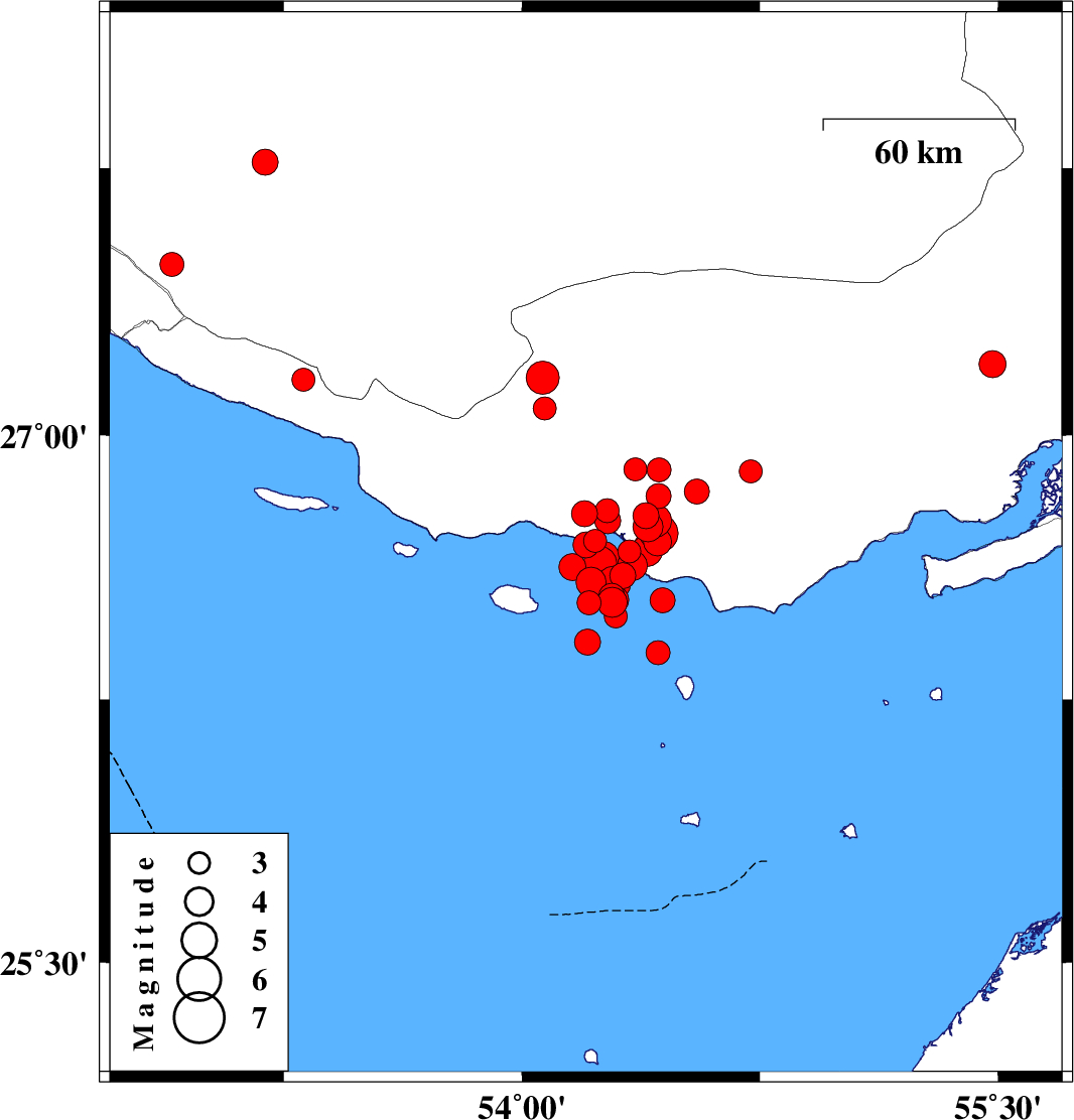 2022/06/15 06:04:38.7 10:34:38.7 26.5854.28926 ML4.8 Persian Gulf, 56 km -West of Bandar-e lengeh