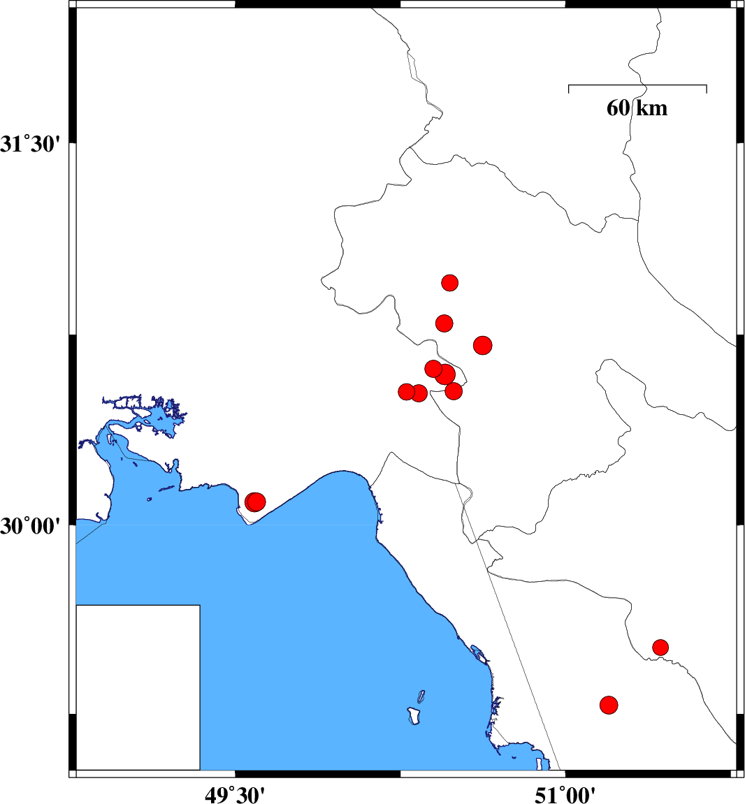 Khoozestan Province, 20 km South-West of Hendijan | |