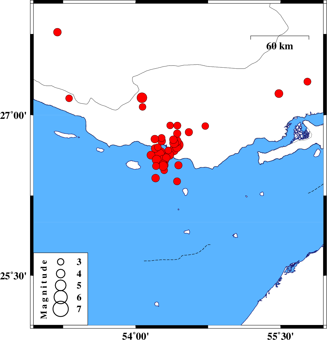 2022/06/15 06:04:38.7 10:34:38.7 26.5854.28926 ML4.8 Persian Gulf, 56 km -West of Bandar-e lengeh