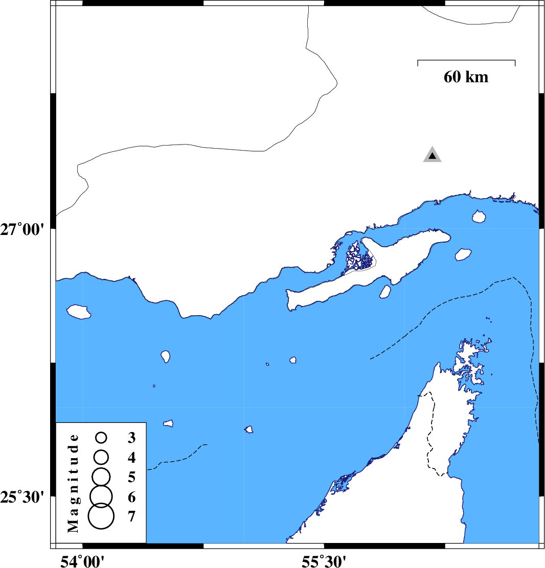 | 2023/02/07 | 02:30:57.5 | 06:00:57.5 | 26.734 | 55.333 | 12 | ML4.2 | Persian Gulf, 53 km North-East of Bandar-e lengeh |