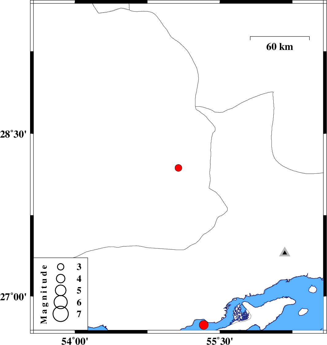 | 2023/02/07 | 02:30:57.5 | 06:00:57.5 | 26.734 | 55.333 | 12 | ML4.2 | Persian Gulf, 53 km North-East of Bandar-e lengeh |