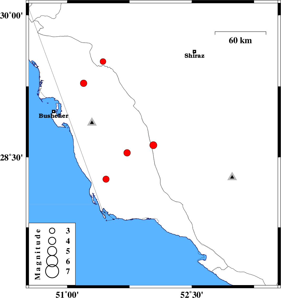| 2023/01/29 | 06:30:39.3 | 10:00:39.3 | 28.265 | 51.467 | 24 | ML3.5 | Bushehr Province, 44 km South of Khormog | ||